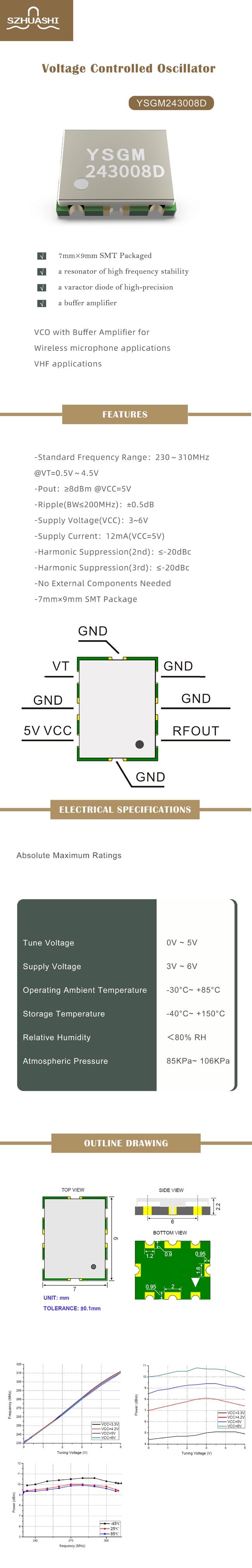 Innotion High integration Voltage Controlled Oscillator 230-310MHz 8dBm for Integrated circuits components
