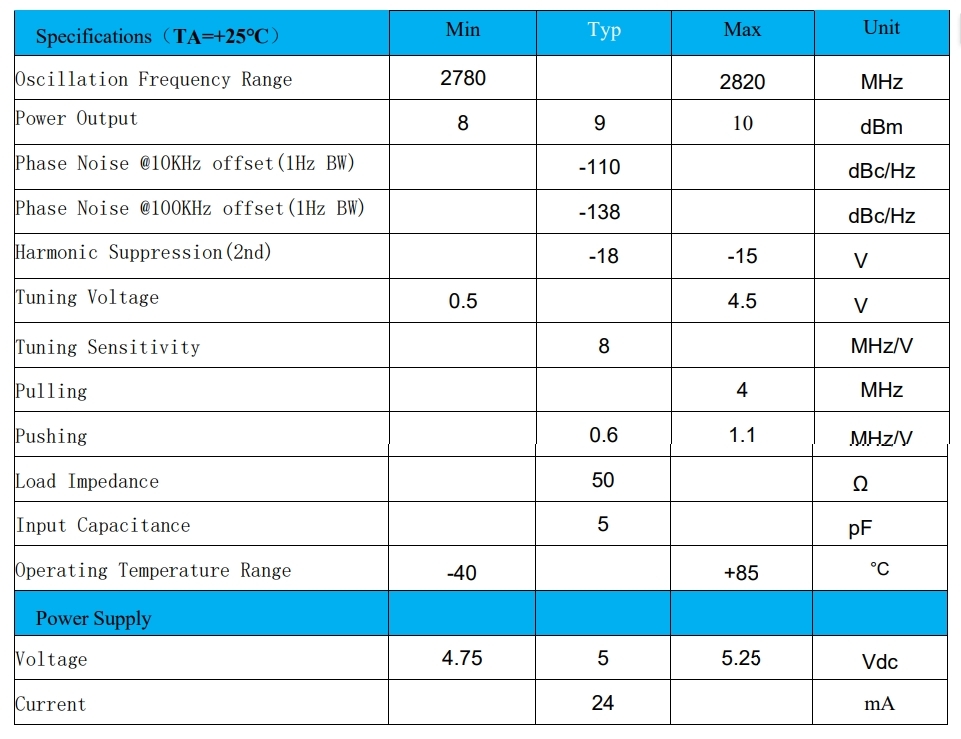 IC Chip Coaxial Resonator Oscillator 12dBm 24mA for Electronic Parts 2780-2820MHz Images |